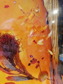 Pannello decorativo di resina fatto a mano con incorporati fiori secchi e tronco di ulivo Colore arancione con strisce led Misure Altezza 90cm Larghezza 40cm