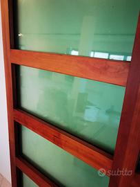 Divisorio per ingresso, ufficio, casa o una zona che vuoi dividere e dare un po' di riservatezza e rendendo bella allo stesso tempo l'ambiente. Questo pannello divisorio è fatto con struttura in ciliegio massiccio ha cm 241x 100x5 e ha una mensola come vedi in foto arrotondata da cm 100x31x5 da applicare ad un lato del pannello ad uso appoggio oggetti.