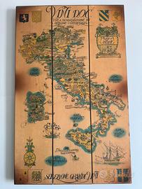 Pannello/quadro in legno vintage con rappresentazione dei vini italiani Misure 98x62 cm