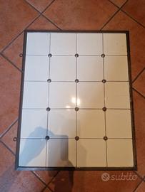 Uno con dimensioni cm. 76x46 costituito da 15 piastrelle colore bianco candido, il secondo da cm. 76x61 costituito da 20 piastrelle color crema. Entrambi appartenevano ad una cucina di una vecchia cascina. Sono dotati di supporti per appenderli e hanno la struttura in metallo originale dell'epoca. Prezzo cadauno