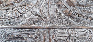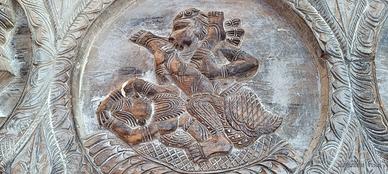 Pannello votivo Indiano in legno con 5 figure del Kamasutra e finemente intagliato.Molto rari da trovare in commercio oggi, perché venivano smontati dai Templi Indiani negli anni 1920/1930. Lunghezza mt 1,82 larghezza 46 cm ,spessore 3'5 cm peso 19 kg.