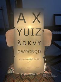Vendesi pannello da oculista con le lettere stile vintage. È illuminato con luce calda ma le lampadine possono essere facilmente sostituite se si preferisce luce fredda o naturale.