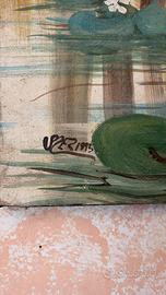 Vendo grande pannello decorativo dipinto a mano nel 1995, firmato da Uber Gatti. Soggetto: Paesaggio esotico con bambù, laghetto con ninfee, uccelli tropicali e farfalle. Colori originali ancora vivaci. Grande impatto scenografico. MISURE: è un pezzo grande da parete FIRMA: Uber 1995 in basso a sinistra, ben leggibile EPOCA: 1995 CONDIZIONI: Tela integra, colori brillanti, no strappi. Pronto da appendere. Perfetto per arredare ristorante etnico, sushi bar, centro benessere, B&B a tema, hall di hotel, salone o locale grande. Pezzo unico dipinto a mano, NON è una stampa moderna. Ritiro a mano zona Brescia. No spedizione per le dimensioni e la fragilità. Prezzo 180 euro trattabili solo se ritiro veloce.
