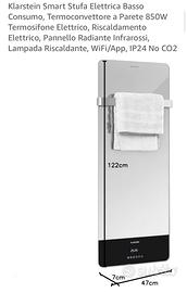 Klarstein Smart Stufa Elettrica Basso Consumo, Termoconvettore a Parete 850W Termosifone Elettrico, Riscaldamento Elettrico, Pannello Radiante Infrarossi, Lampada Riscaldante, WiFi/App, IP24 No CO2