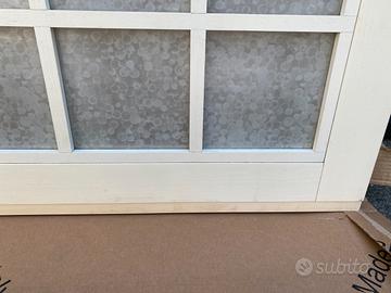 Pannello scorrevole Struttura in legno bianco Quadrotti in vetro Dimensioni in cm. 122,5 L x 229 H x 2,5 SP
