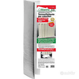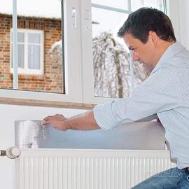 N4 Pannelli TERMO riflettente sagomabile adatto a tutti i tipi di calorifero; grazie alla presenza dell'alluminio, riflette il calore evitando l sua dispersione attraverso il muro; efficace anche in presenza di valvole termostatiche