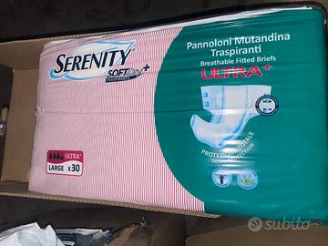Serenity light super x 30 (4 pezzi) Serenity soft-dry x30 (3 pezzi) Traverse assorbenti x30 (3 pezzi) vendo perché non mi servono più