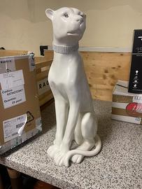 Pantera bianca da arredamento bianca con occhi e collare incastonati con pietre