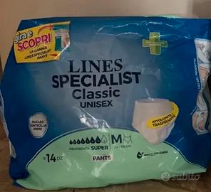 Pants marca Lines taglia S, livello asdorbenza 7, prezzo 7€ al pacco.