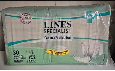 Pannoloni a mutandina marca Lines , cinfezione da 30 pezzi come in foto, prezzo 10€ al pacco.
