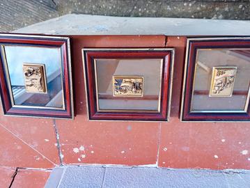 3 quadretti di paolo rossini su lastra argentata; hanno la loro età( paolo rossini è degli anni 60); è un artista che si sta rivalutando ultimamente..vendo, ma forse il prezzo è sottocosto anche per un solo quadretto; comunque lo vendo tutti e 3 insieme