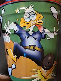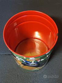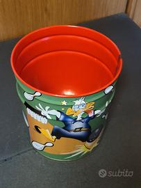 Bidone in latta vintage originale, prodotto in Italia da Mivat, con splendida grafica Disney dāepoca.