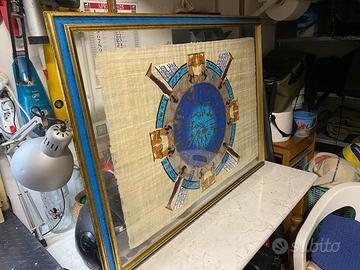 Papiro egiziano originale acquistato personalmente in Egitto negli anni ’90. Si tratta di una riproduzione artigianale del celebre Zodiaco di Dendera, uno dei più importanti reperti dell’Antico Egitto, oggi conservato al Museo del Louvre di Parigi.