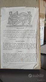 certificato di autenticità per papyrus egiziano, che garantisce che il prodotto è stato coltivato e lavorato artigianalmente secondo le antiche tradizioni. Il certificato è stampato in arabo, inglese e francese, con dettagli sulla composizione e sulle tecniche di produzione del papyrus, utilizzate dagli antichi Egizi.