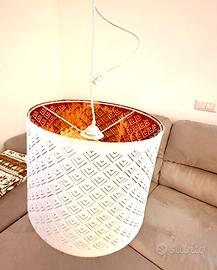 Lampadario da soffitto Ikea Nymo. Bianco/Ottone cm 59. Tenuto benissimo, come da foto. La luce filtra attraverso il perforato creando un effetto luminoso decorativo nella stanza. Euro 25