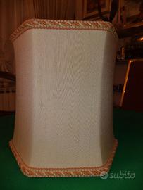 Vendo bellissimo paralume in seta con decorazione in tessuto sui bordi. Forma esagonale, attacco lampadina perfettamente funzionante. Diametro 25 cm, altezza 27 cm. Può essere usato anche come lampadario di stile.