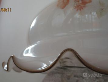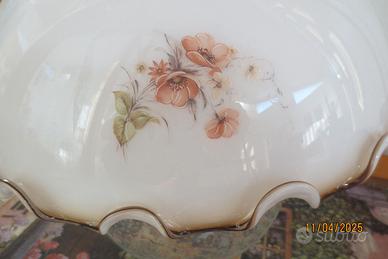 RIcambio per lampadario campana / Paralume in vetro per lampadario vetro opalino fatto a mano decorazione floreale bordo smerlato. Disponibili 2 di forma diversa e decori diversi.