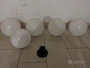 Vendo 5 paralumi - lampioni a sfera bianchi a 50€. Dispongo di 5 pali in plastica neri con gli attacchi per i lampioni con prezzo aggiuntivo di 50€. Alcuni pali sono dotati di interruttori.