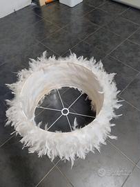 Paralume per lampadario a sospensione ricoperto di piume. Prodotto Maison du monde. diametro 50cm altezza 30cm foro da 4cm.