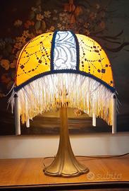 paralume vintage rivisitato. cucito a mano con metodo one on one, in raso e pizzo , piume e frange. Si adatta anche a basi lampada con stile moderno e minimal.