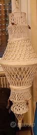 2 paralumi di lana con lavorazione macramè, lunghezza : uno cm 109, l'altro cm 65. Da utilizzare appesi o con aggiunta eventuale di filo e lampadina. MAI USATI! Già scontati.