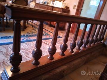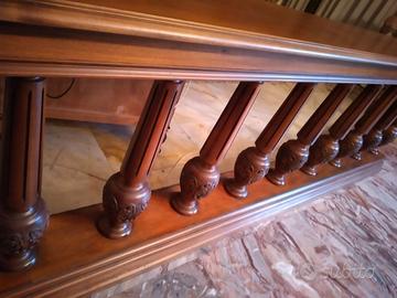 Parapetto divisorio in Mogano antico con 11 colonne lavorazione artigianale ( anno 1955 ), misure: 300x30 altezza 85cm.