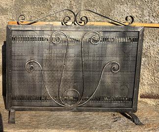 Parascintille per camino/stufa a 3 ante richiudibili in ferro battuto, 65 x 55h cm, con ante aperte 100cm
