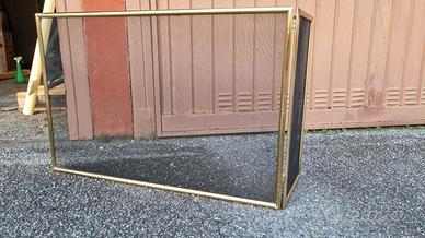 Parascintille per caminetto angolare in ottone. L'antina laterale si può togliere svitandola.