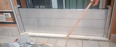 Paratia antiallagamento a doghe in acciaio inox completa di guide, doghe da 15 cm per un'altezza totale di 45cm e lunghezza di 147 cm. E' possibile ridurla in base alla misura che serve. Ritiro in loco.