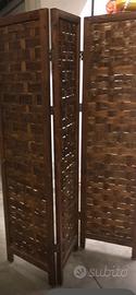 Paravento divisorio a tre ante in legno intrecciato Misure indicate in foto
