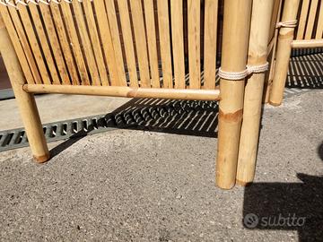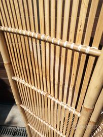 Paravento in bambù naturale, realizzato artigianalmente. Robusto, di qualità, poco usato. Altezza 181 cm. Larghezza totale circa 135 cm.