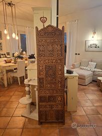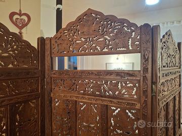Vendo splendido paravento / separé in legno pregiato teak, completamente lavorato ad intaglio. Misure da chiuso 50cm x 1.90cm di altezza, da aperto moltiplicare per quattro. Tenuto in ottime condizioni. Date le dimensioni, ed il peso, NON si spedisce. Possibile consegna, previo accordo, in zone limitrofe ad Ivrea (TO). Chiamare il n° 3401548844, Giovanni. Grazie.