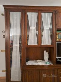 Parete attrezzata “Arte Povera” PATRIARCA. Credenza per soggiorno/cucina in cui poter conservare stoviglie, bicchieri, piatti e tanto altro. Particolare e comoda con il suo spazio per il televisore, inoltre le ante con le vetrate a giorno ed i cassetti la rendono sfruttabile in qualsiasi ambiente.