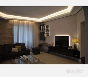 Vendo per trasferimento parete attrezzata in noce nazionale di colore nero in ottime condizioni. È compresa nel prezzo la vetrinetta da appendere in vetro come si vede in foto e il camino ma SENZA il bruciatore.