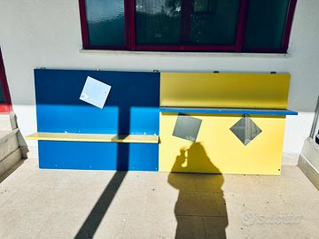 Ideale per camerette bimbo/bimba Vendo per inutilizzo due simil pareti attrezzate con mensole e soecchietti blu e gialla. 1x2,40 m