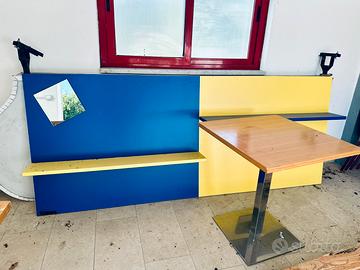 Parete attrezzata blu e gialla