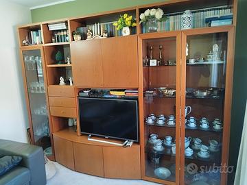 Parete attrezzata in massello ciliegio in perfette condizioni, dimensioni L 305 X H 228 X P 45. vendibile anche singoli pezzi, Prezzo trattabile