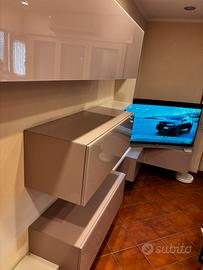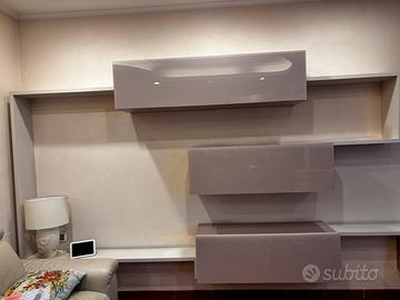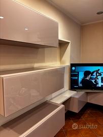 Parete attrezzata Salone Componibile come vuoi Con angolo Colore rosa /tortora/ bianco Ante in vetro e legno Ritiro a napoli Usata ma senza difetti Mi scrivi ti giro video ♥️