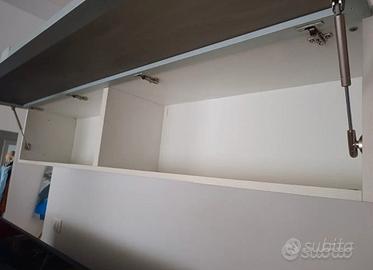 come da titolo regalo, per inutilizzo e cambio mobili, una parete attrezzata compresa di 2 mensole bianche in legno pieno e 1 solo mobile sospeso con sportelletto. fare attenzione alle foto, le parti segnate con la X rossa non sono disponibili, regalo solo il resto. tutto già smontato, trasporto a carico dell'acquirente.