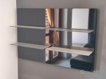 Parete attrezzata con mensole Pianca in legno laccato nero lucido con 4 mensole adatta anche come libreria.