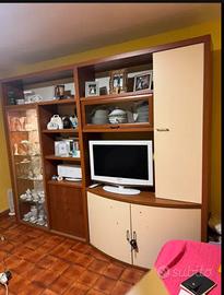 Causa nuoba disposizione arredo, vendesi parete attrezzata finitura ciliegio e panna, con anta vetro scorrevole con faretto interno. La parete è im buone vondizioni e viene proposta a un ottimo prezzo. Ritiro a trasporto a cura dell’acquirente. NO PERDITEMPO