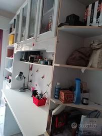 Parete attrezzata con scrivania lunga(90+160+40) 290cm, h250 , profonda 42 libreria e 60cm la scrivania. Scrivania con cassettiera lung 160cm, prof 60cm, h80cm. Cassetti cm45. Disponibile subito. Zona Roma-Casilina