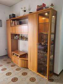 Parete attrezzata con luci nelle vetrine, con tavolo e 6 sedie, tutto in ciliegio. Tenuto benissimo vendiamo urgentemente anche separatamente.