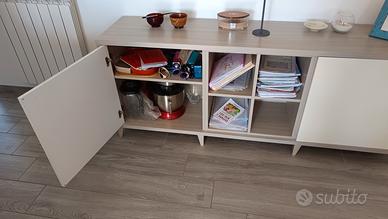 Vendo soggiorno composto da parete attrezzata e credenza come in foto, tutto in ottime condizioni. Solo il cassettone inferiore presenta un lieve danno (vedi foto) che può essere spostato internamente smontando il pannello e rimontandolo al contrario. Ovviamente sono in vendita solo i mobili. prezzo poco trattabile, considerando che nuovo costa più del doppio. Visionabile in qualsiasi momento, ritiro a Quarto.