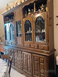 Elegante parete attrezzata dei primi del ’900, realizzata in legno massello di ottima qualità.