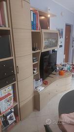 Vendo a 500€ parete attrezzata da soggiorno in ottime condizioni completa di cassetti, cassettoni, vetrine, faretti e staffe posteriori; alta 2,22 m. Lunghezza massima 3,70m. e profondità che dai 40cm dei cassetti a 79cm dei cassettoni; faretti completi di interruttore. Smontaggio e trasporto a carico dell'acquirente.