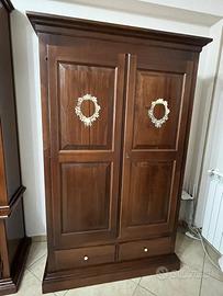 Parete attrezzata e armadio 2 ante. Vendo in buone condizioni, colore noce medio tutto legno massello. Vendibili anche singolarmente. Per maggiori info non esotate a contattarmi.