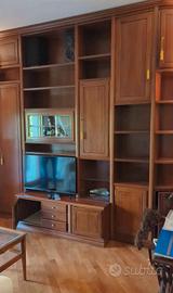 parete attrezzata in legno liscio larghezza 3,20m altezza 2,80m con piccola vetrina inclusa sul davanti... smontaggio e trasporto a carico dell acquirente tenuta perfettamente