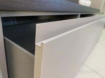 Composizione giorno della linea “Atlante” del Gruppo Tomasella. La parete è composta da capienti basi a cestone con maniglia a gola laccata da 144cm cadauna. Il top da 6cm di spessore può essere utilizzato sia come piano d’appoggio sia come porta tv. In appoggio sulla 2a base vi sono 2 basi verticali ad apertura push-pull, dotati di ripiani in vetro. Al centro fra le due si presenta il Totem in appoggio “Square” in finitura Rovere Moka Cannetè. Finiture utilizzate: ROVERE MOKA CANNETE’ + MATERICO ARENA. Dimensioni: Lunghezza 288cm P 40,3cm H 183cm. PREZZO DI LISTINO €3.900,00 + iva ____________________________________________________ Per qualsiasi info siamo a disponibili ai numeri: - Mostra numero - Mostra numero anche whatsApp