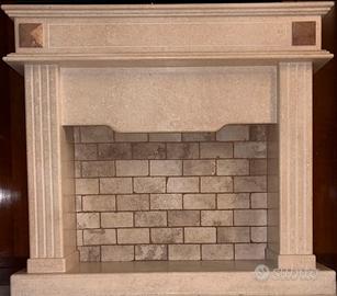•Camino decorativo in marmo con inserti e rivestimento interno in mattoncini chiari;
